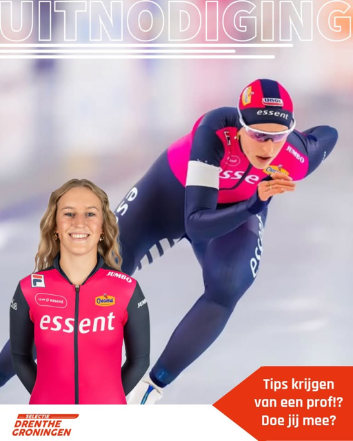 Dit jaar hebben we een leuke gast! Meike Veen van Team Essent, en ook begonnen op onze ijsbaan, sluit aan bij de training, zo kunnen onze kids samen met haar trainen en haar het hemd van het lijf vragen!
